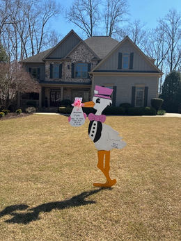 Welcome to our playful corner of the internet! We're your go-to for Stork Yard Signs and special occasion signs, plus some fun add-ons for your furry friends and siblings. With over 25 years of experience, we've mastered the art of helping families roll out the welcome mat for their new little bundles of joy- because who doesn't love a great yard sign? Don't be shy- call, email, text or fill out our contact form to get your orders in, and let's celebrate in style!
